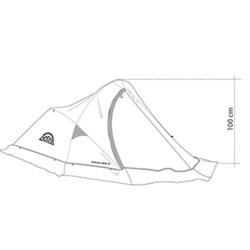 Carpa profesional para 2 personas con faldón completo. Estructura de varillas de duraluminio para menor peso y mayor resistencia. Respiradores laterales y ventilación delantera, para mejor circulación del aire. Espacio extra en la entrada para almacenaje. Impermeabilidad 5000