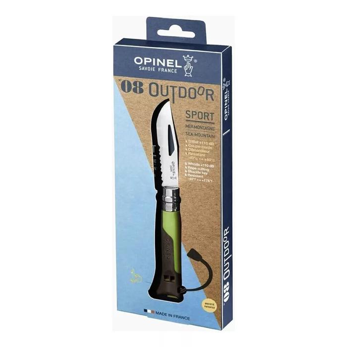Su lámina de gran resistencia y 2,5 mm de grosor lleva una parte dentada de 3,5 cm, muy eficaz para cortar sin desgarros las cuerdas naturales o sintéticas, además de un abregrilletes para los grilletes de 4 a 10 mm. El mango resiste al agua y las temperaturas extremas, y lleva un silbato que se puede utilizar en cualquier tiempo.Hoja de acero inoxidable