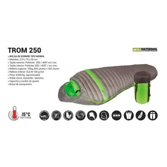 BOLSA DE DORMIR ULTRACOMPACTA PLUMA -15º WATERDOG TROM250 900GRS.