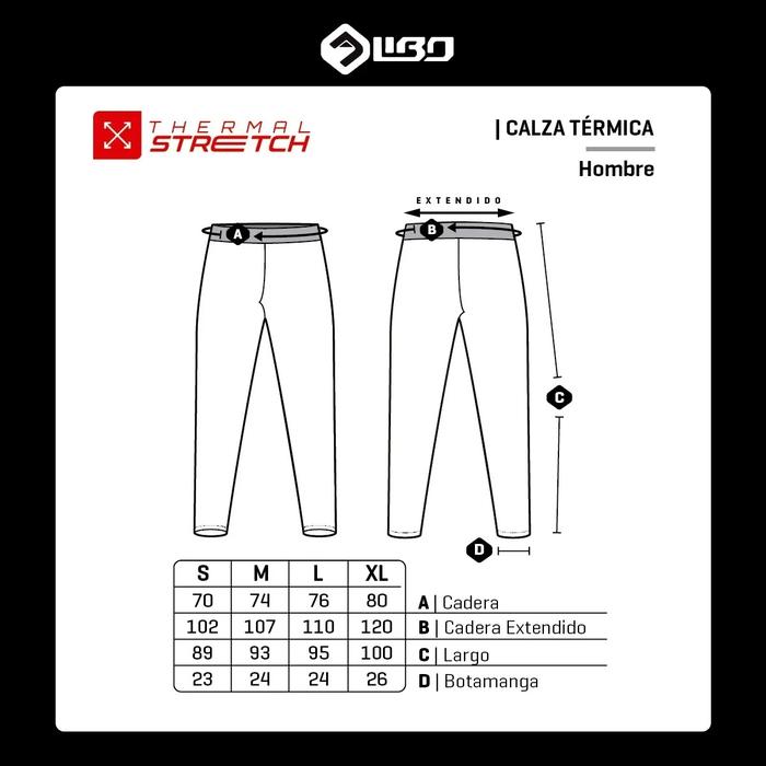 Calza primer capa elástica, confeccionada en Thermal Stretch, ideal para tus actividades que requieran de una prenda térmica con gran capacidad de absorción y secado rápido.