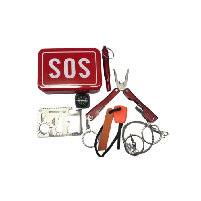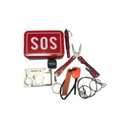 Kit de artículos útiles esenciales; todo en un práctico y seguro estuche metalico bien identificado con las siglas internacionales SOS