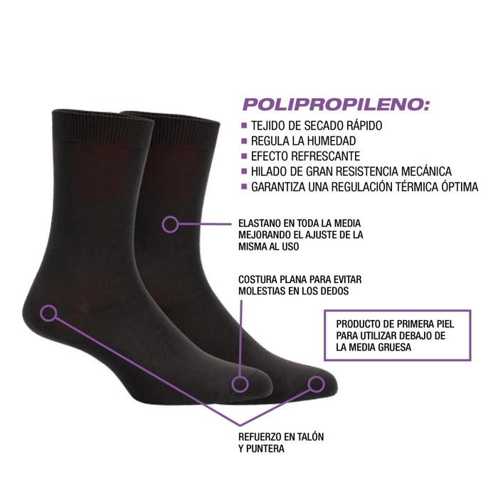 Mantiene el Pie seco, permitiendo que la humedad corporal pase y circule hacia el exterior a través de la media.-