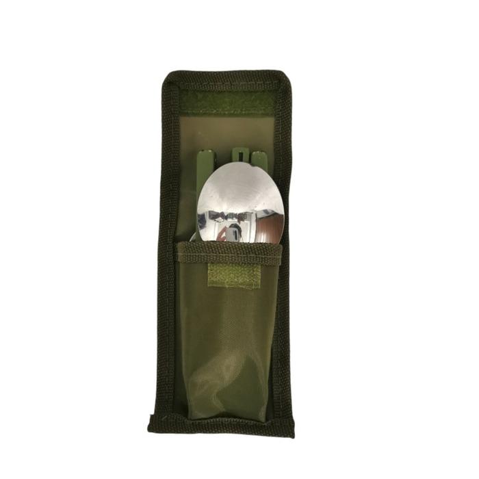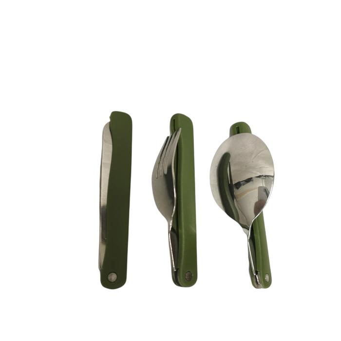 SET CUBIERTO CAMPING PLEGABLE CON FUNDA VERDE