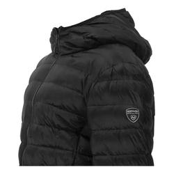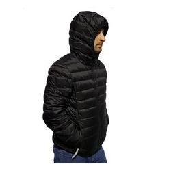Su confección consta de una exhaustiva selección de las mejores y más livianas plumas de ganso y un 10% de relleno de pluma tradicional que provocan que el duvet permanezca esparcido por toda la prenda cubriendo cada parte de la prenda el diseño de tiras horizontales colaboran en esta tarea dándole una textura y una apreciación extra.