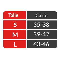 Media tecnica diseñada para climas calidos y frios. Sus fibras optimizan el control de la temperatura y humedad durante la actividad deportiva permitiendo la termorregulacion corporal correcta. Puños con fibra Lycra® para mejorar la sujecion. Posee costuras planas que evitan roces y zonas reforzadas en superficie de apoyo y articulaciones, que mejoran la amortiguacion contra los golpes y mayor durabilidad.