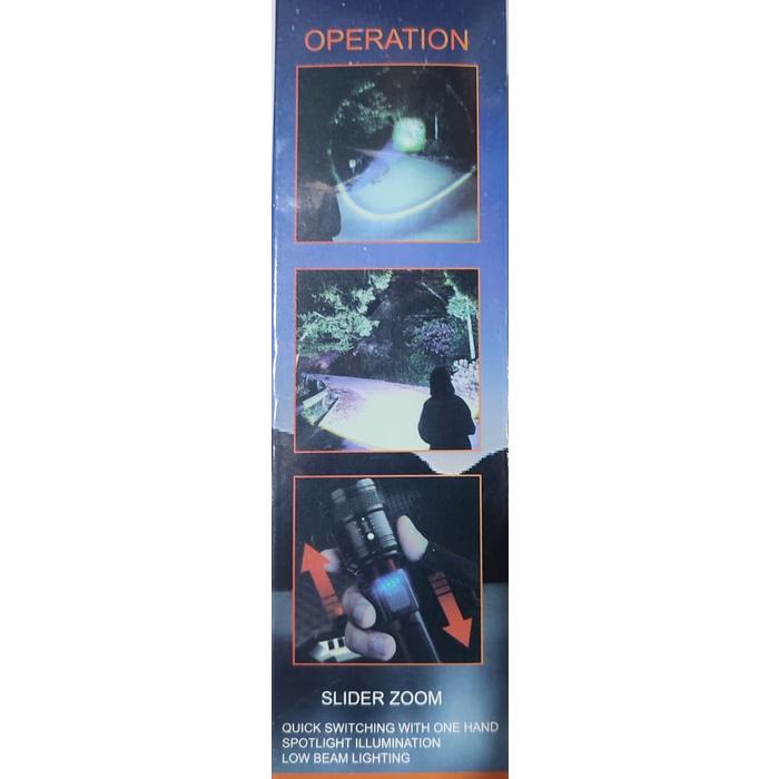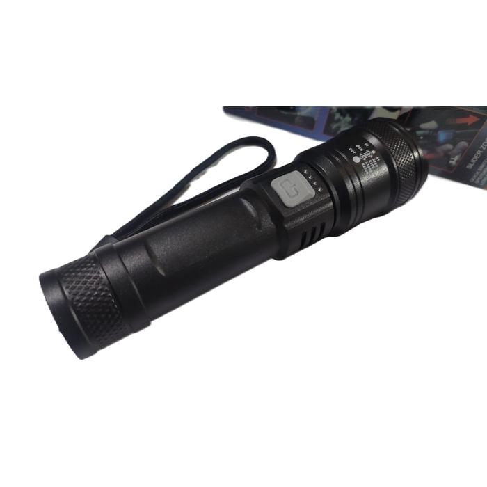Linterna modelo L39 es perfecta para cualquier aventura. Con un potente LED y función de zoom, ofrece iluminación ajustable para diversas situaciones. Fabricada en PVC duradero, es recargable vía USB, lo que garantiza comodidad y eficiencia. Producto en caja.