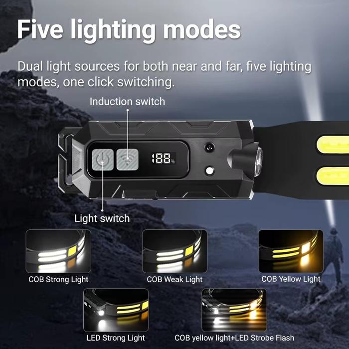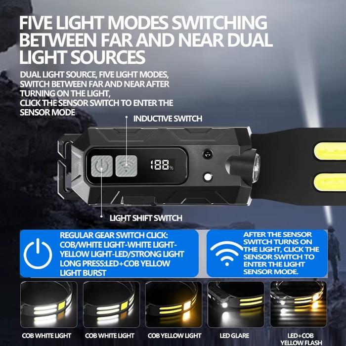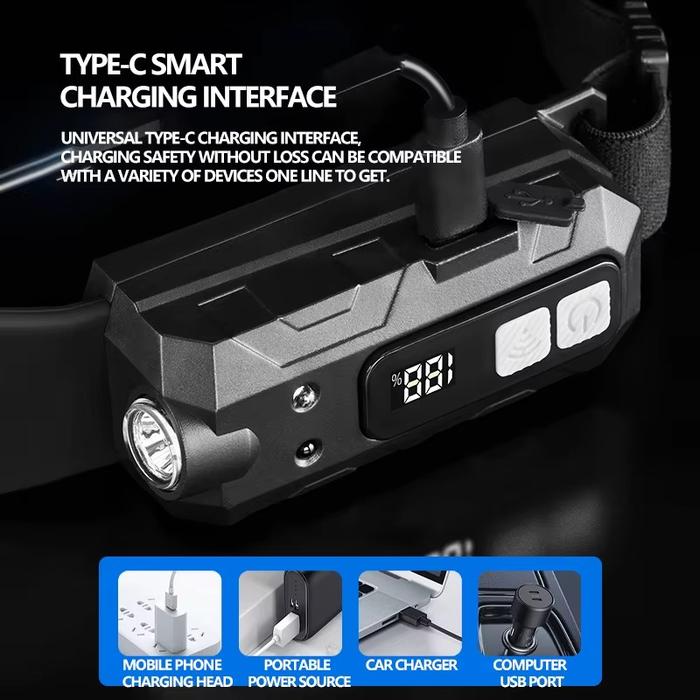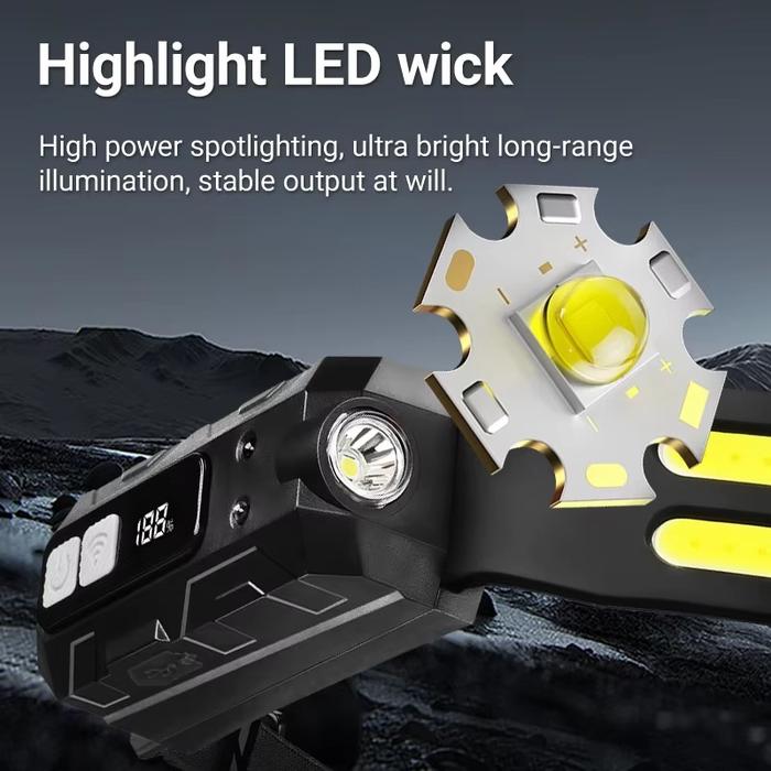 LINTERNA DE CABEZA ALTA POTENCIA CON PANTALLA DIGITAL Y SENSOR DE ENCENDIDO