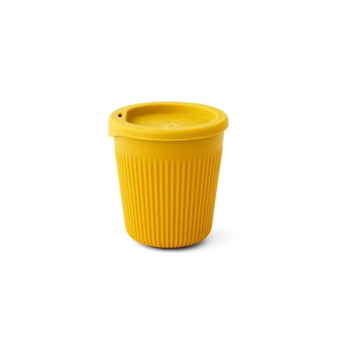 La tapa de silicona para sorber se pliega cómodamente dentro de la taza