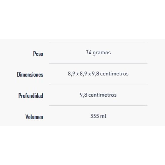 Tiene capacidad para 355 ml de tu bebida favorita.