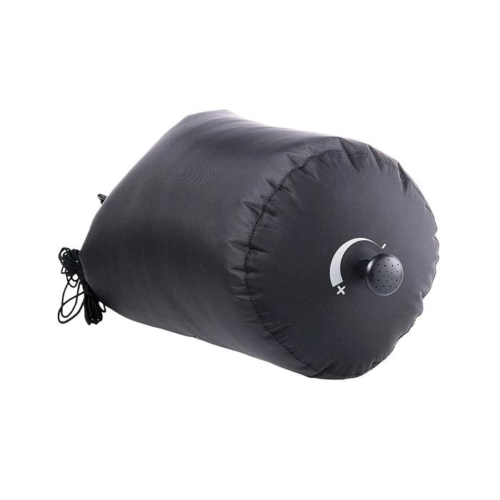 La ducha de bolsillo está hecha de nailon 70D, el mismo tejido impermeable, resistente al desgaste y de alta calidad que nuestras bolsas impermeables ligeras. Las costuras están completamente selladas y el cierre enrollable cuenta con dos anillas en D sujetas a un cordón de nailon de 6 metros, lo que permite colgar la ducha prácticamente en cualquier lugar. La base incorpora un cabezal de ducha compacto que funciona con un mecanismo giratorio de encendido y apagado fácil de usar para ajustar el flujo de agua. La tela negra absorbe el sol durante el día en el campamento base para una ducha caliente de aproximadamente ocho minutos.