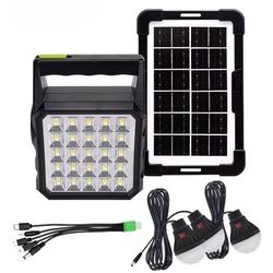 KIT PANEL SOLAR RECARGABLE PORTÁTIL CON 3 FOCOS y CABLE MULTIUSOS