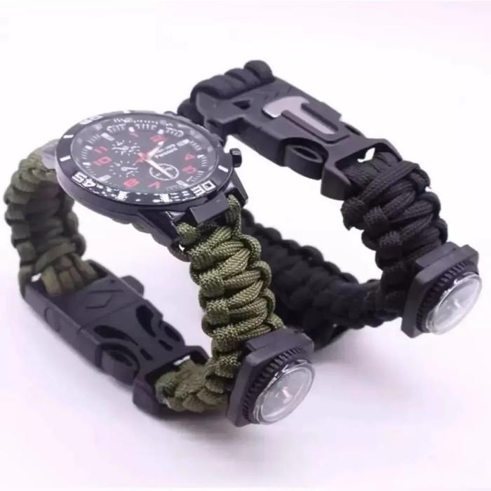Reloj táctico de supervivencia negro con Pulsera de cuerda Paracord 3.65 mts soportando una tensión de 250 kilos de Paracord de Nylon de grado militar.