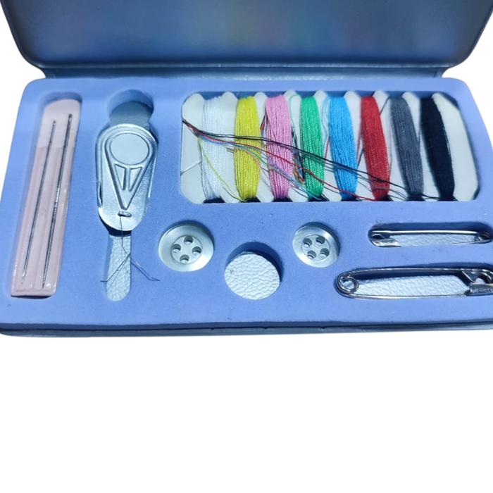 - Incluye hilos de varios colores, agujas, enhebrador, botones y alfileres de seguridad.
