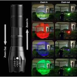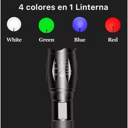 LINTERNA TACTICA CON ZOOM Y 4 LUCES: BLANCA, ROJA, AZUL Y VERDE