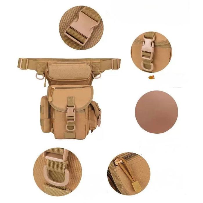 Hecha de nailon de grado militar 1000D, es resistente a los arañazos, al agua, al desgarro, etc. Gran capacidad: 3 compartimentos principales, 2 bolsillos laterales y 4 bolsillos ocultos, suficiente para acomodar equipo EDC, como teléfonos inteligentes, bancos de energía, billeteras, gafas de sol, cámaras digitales, linternas tácticas, llaves, suministros de primeros auxilios de emergencia, etc. Se puede utilizar como bolsa de pierna y bolsa de mensajero, perfecta para actividades al aire libre, camping, senderismo, caza, montañismo, motociclismo, ciclismo, militar, ejército, tiro con airsoft y paintball, viajes, vacaciones, viajes cortos, etc. El sistema de expansión externa está diseñado para usarse junto con otros equipos y kits de accesorios. Su cinturón ajustable y correas para las piernas se adaptan a casi todos.