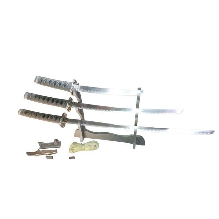 - Incluye la Katana, el Wakizashi, el Tanto y el expositor de madera.