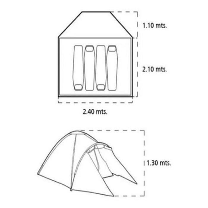 La carpa SPINIT ADVENTURE es muy fácil de armar e instalar y su diseño esta preparado para resistir cualquier tipo de clima, es perfecta para transportar en la mochila. Medida exterior: 240cm de ancho x 210cm + 110 cm (abside) de largo x 130cm de altura.