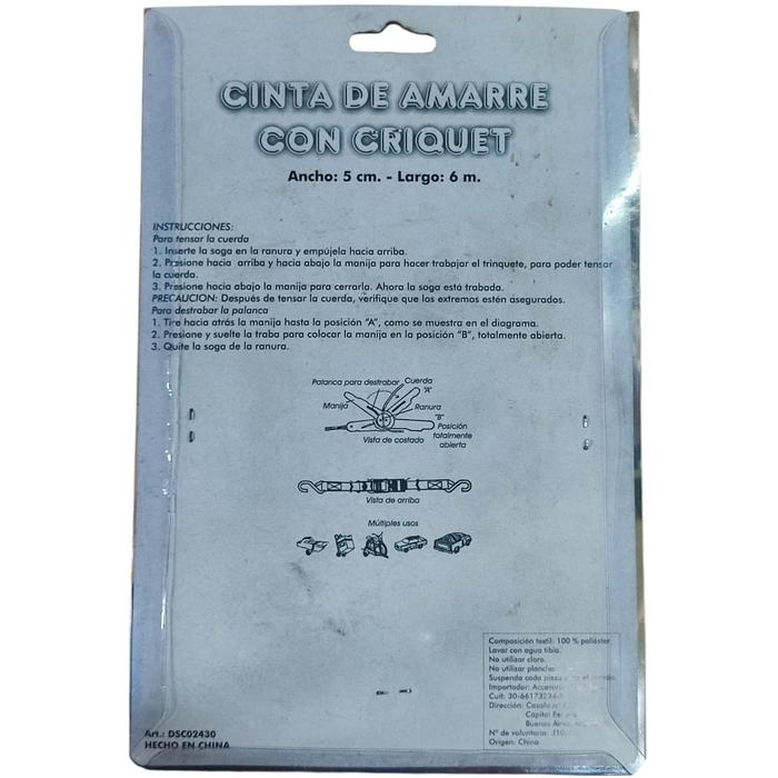 Cinta De Amarre Con Criquet para ajustar y ganchos para fijar