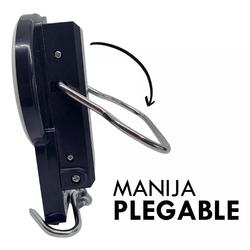gancho robusto, de 5 cm de largo y 3 cm de ancho, asegura un agarre seguro del pez. Aunque no cuenta con función tara, su modelo