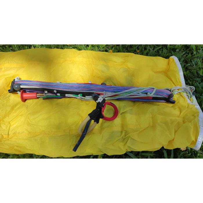 - Utilice siempre el asa de freno al volar una cometa foil. Esta es la asa/línea que une las líneas traseras de su sistema de control. Su fácil agarre facilita el inflado, el aterrizaje automático y el despegue inverso.