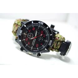 Reloj táctico de supervivencia negro con Pulsera de cuerda Paracord 3.65 mts soportando una tensión de 250 kilos de Paracord de Nylon de grado militar.