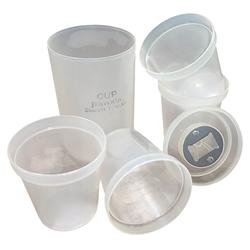 4 VASOS PLASTICOS DENTRO DE 1 VASO PLASTICO MAS GRANDE CON TAPA EN LA CUAL TIENE UN DESTAPADOR