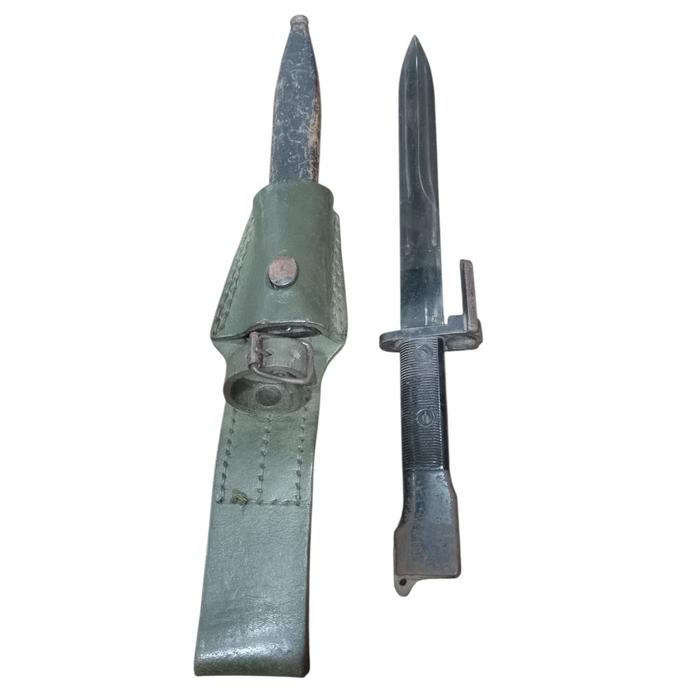 BAYONETA PARA FUSIL F.A.L. ORIGINAL MODELO F.M. - INCLUYE TAHALI DE SUELA V.O. -USADA -