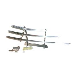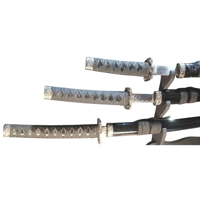 Set decorativo de Katana, Wakizashi y Tanto con hoja de acero al carbono sin afilar.