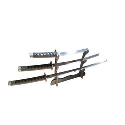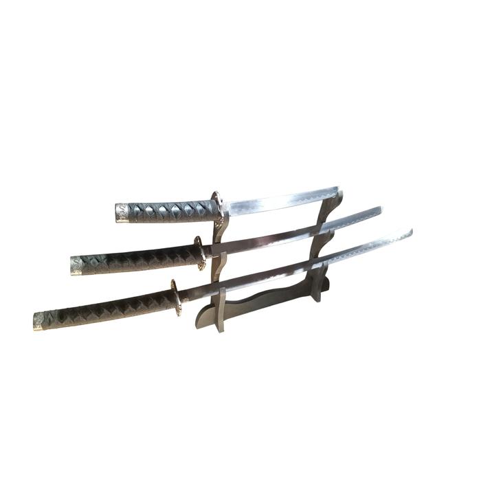 - Incluye la Katana, el Wakizashi, el Tanto y el expositor de madera.